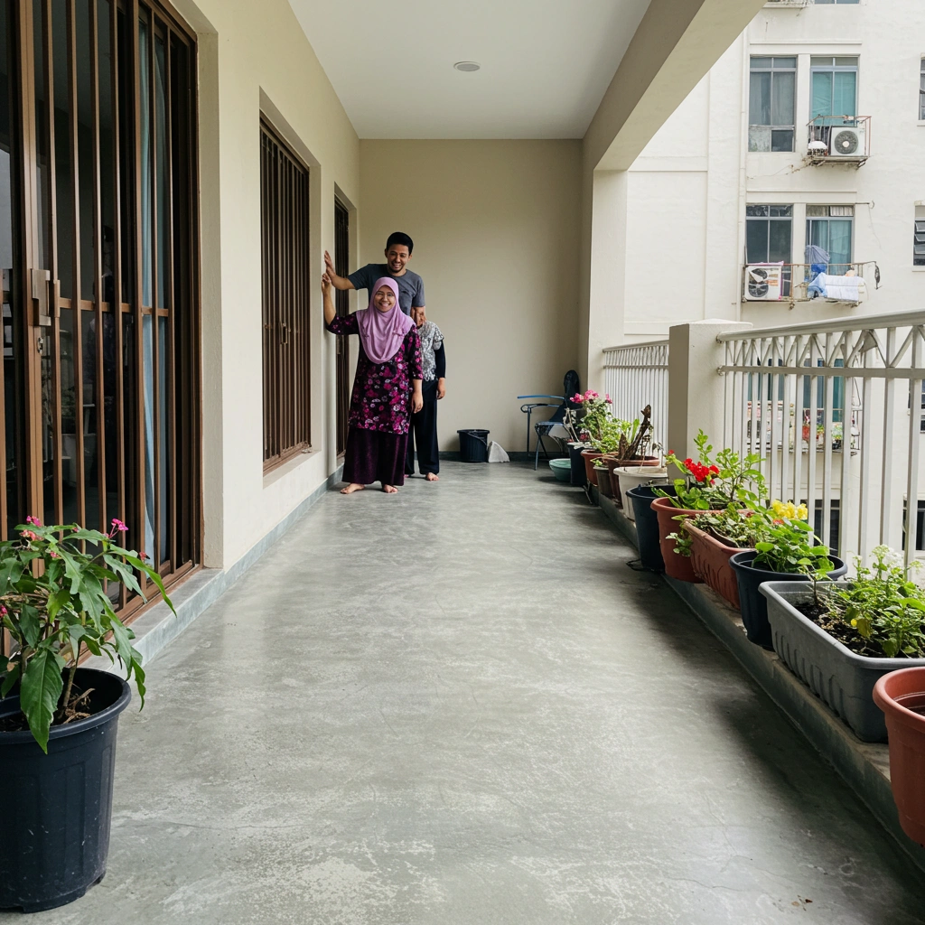 Lantai Halaman Kembali Kuat Retakan simen tertutup rapat, tiada lagi air bertakung bila hujan.