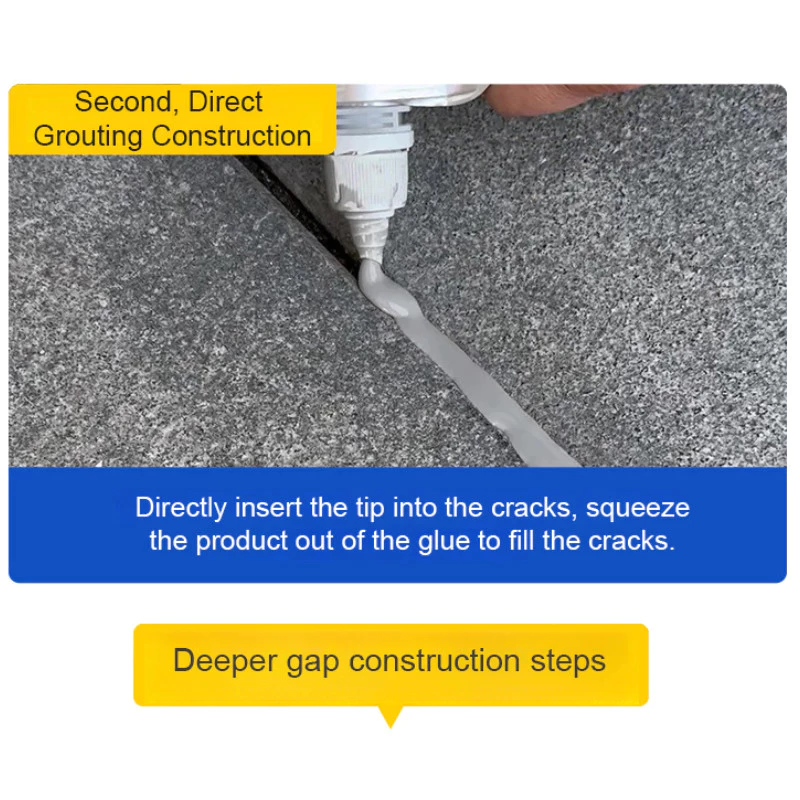 ✅ Baiki Retak Dalam 10 Saat Sapu terus pada rekahan simen, mozek tercabut atau longkang pecah – kering pantas & tahan lama tanpa perlu tunggu tukang.